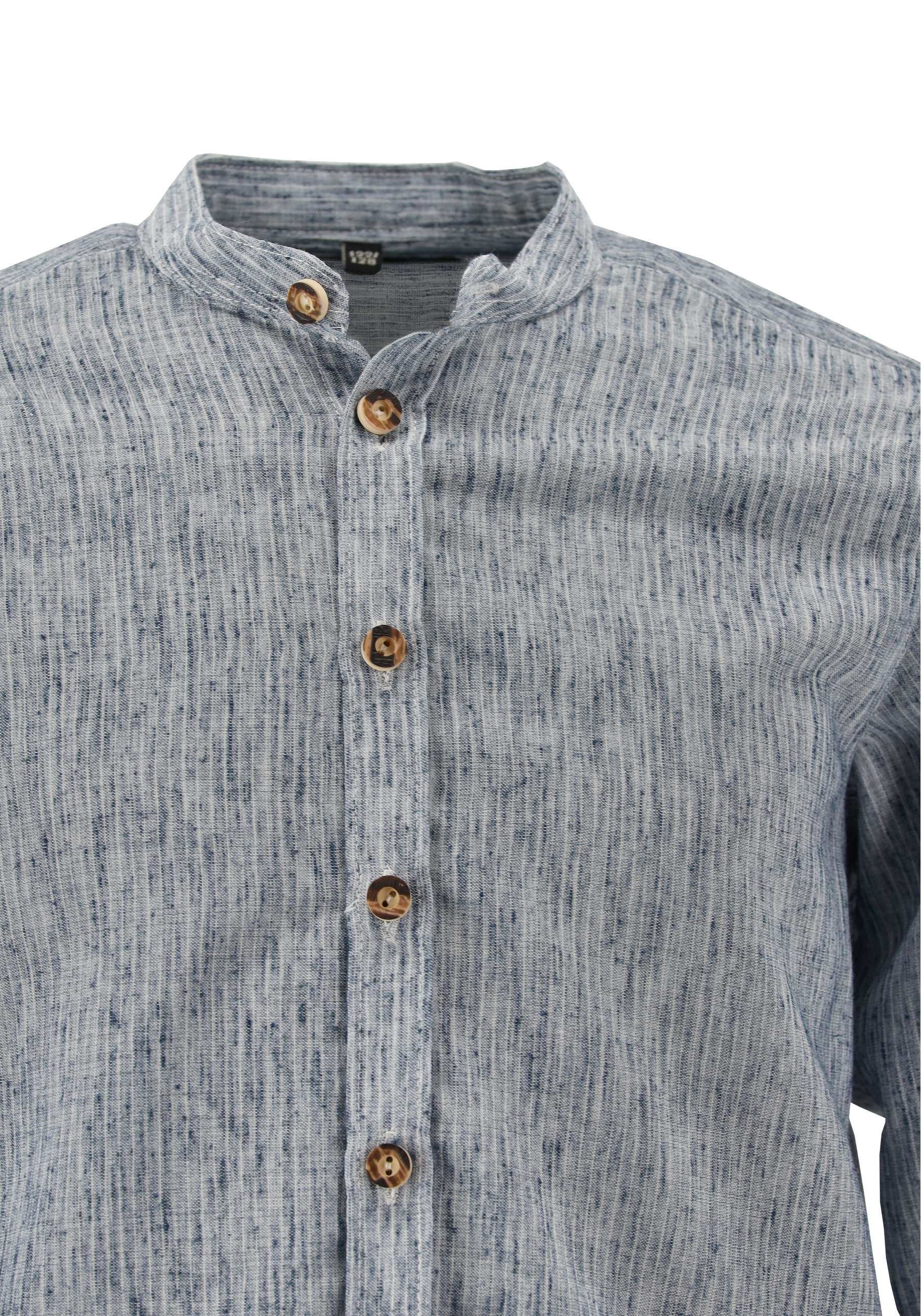 in Kürze: Kinder Trachtenhemd, Farbe: mittelblau / blau / marine, Stehkragen, Knöpfe in Hornoptik
