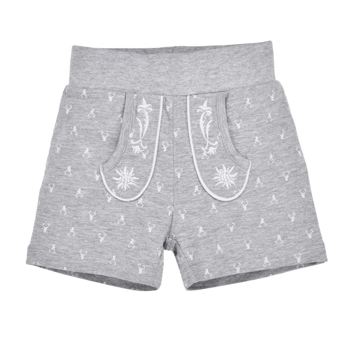 In Kürze: Trachten Short, Farbe: grau, Hirschallover, elastischer Rippbund, Stickerei